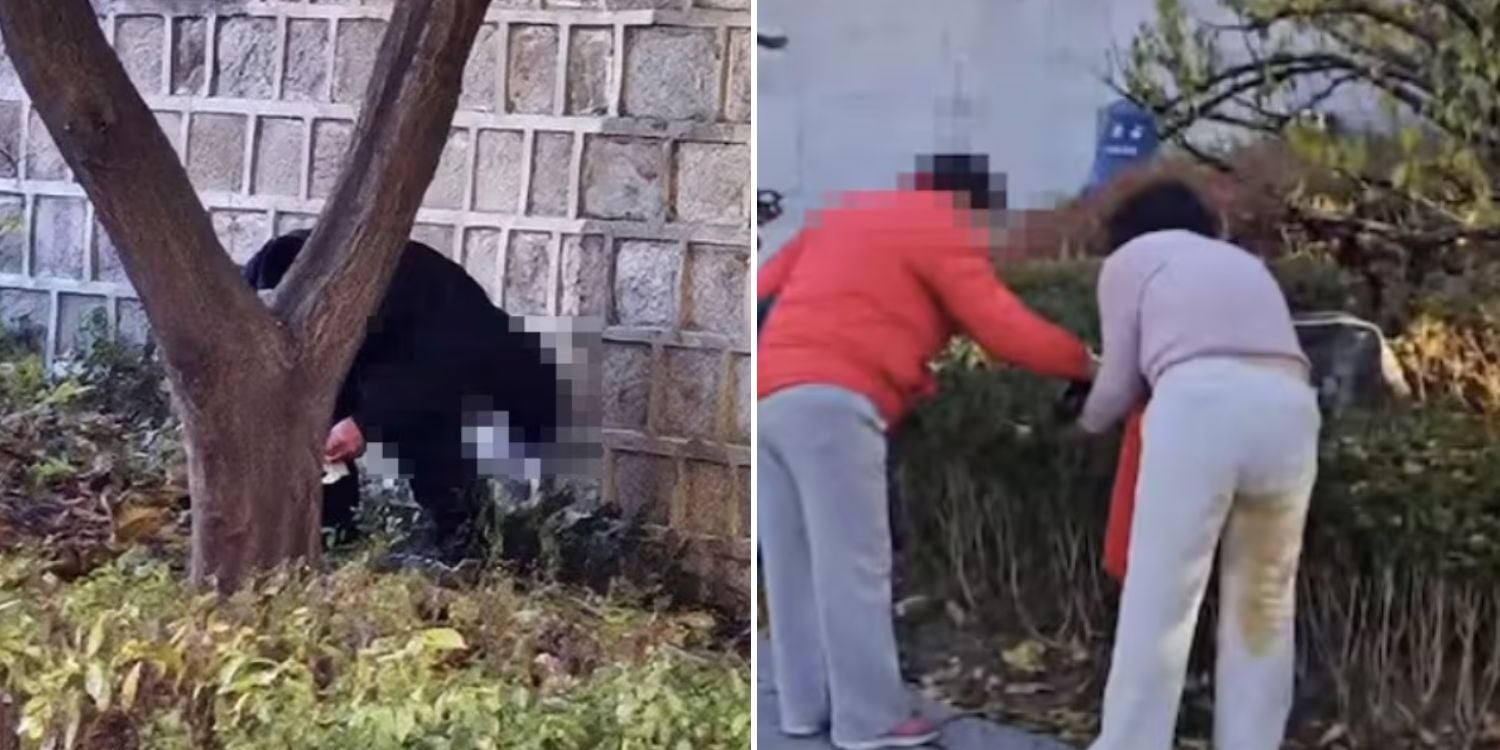 Footage aired by local broadcaster JTBC showed the man crouching in the bushes while holding toilet paper, with the woman beside him pulling down her trousers to relieve herself.