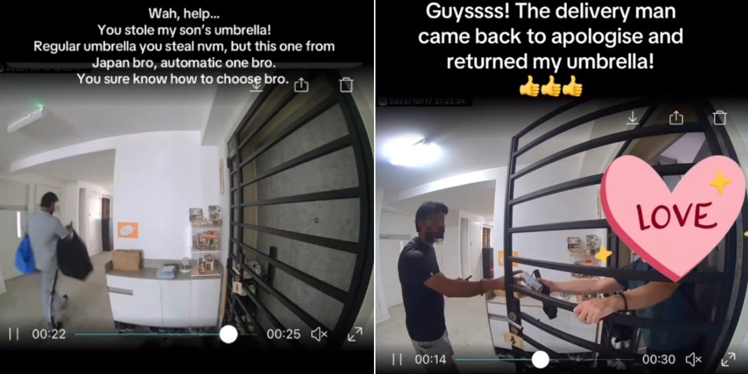 A courier who was seen taking an umbrella from outside an HDB flat returned it personally the next day after the resident posted CCTV footage on TikTok.