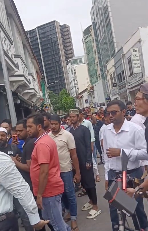 Some videos posted on TikTok showed the congregants gathered outside Angullia Mosque, a heritage mosque along Serangoon Road.