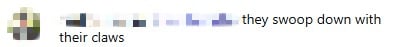 The birds appeared to dive aggressively, with the original poster (OP) noting that “they swoop down with their claws”.
