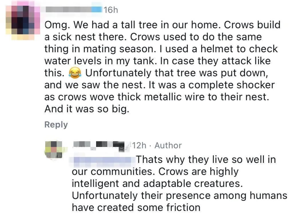 They felt that humans are a threat to their nest and young, he added, cautioning members of the public to “stay away” if they encounter hostile crows.