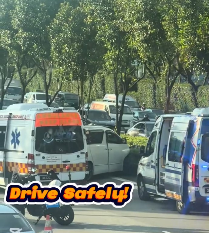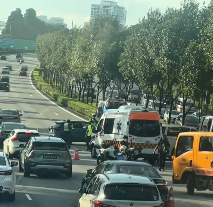 Upon closer inspection, several police vehicles, three ambulances and an Expressway Monitory & Advisory System (EMAS) Recovery vehicle were at the scene of the accident, which blocked off lanes 1 and 2.