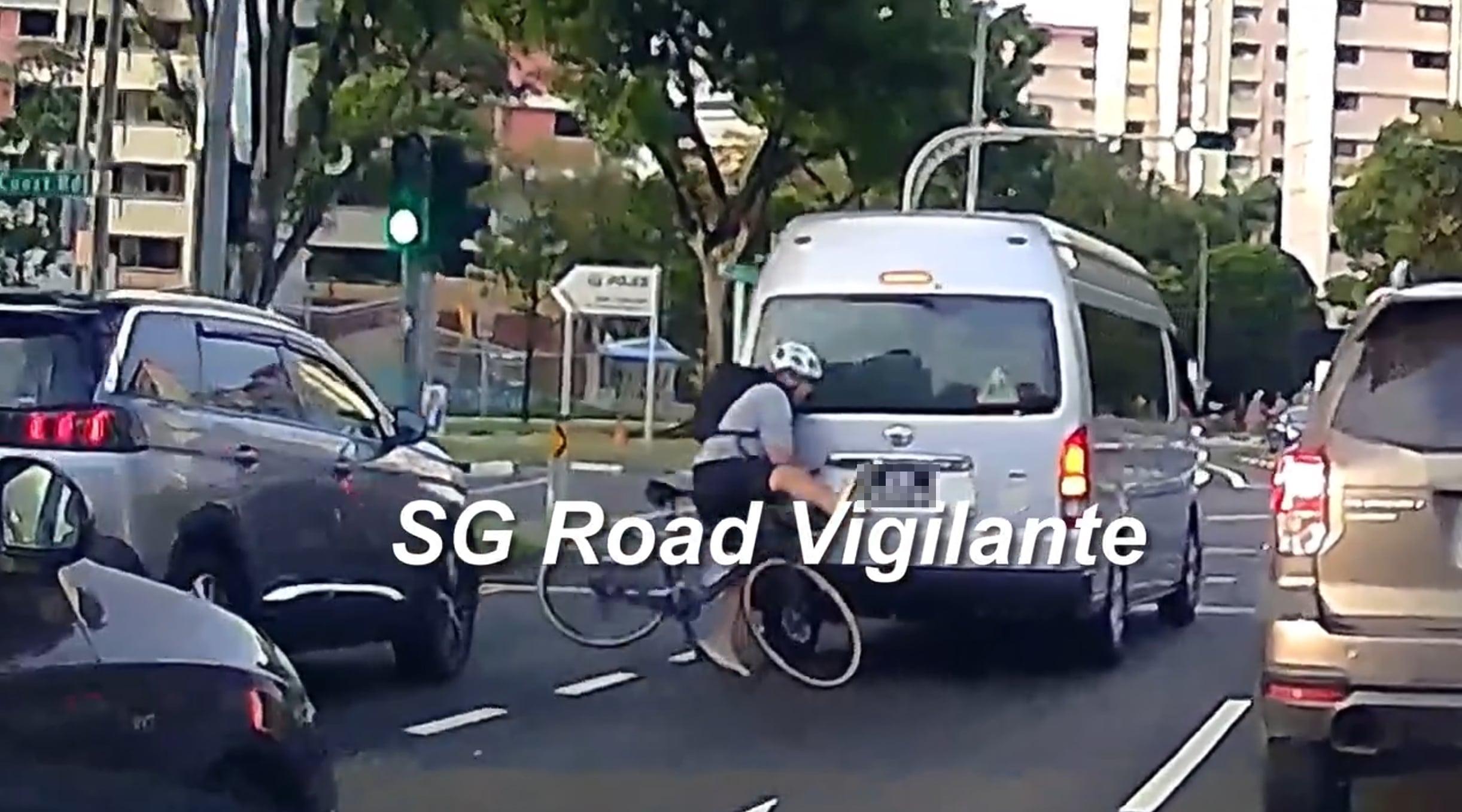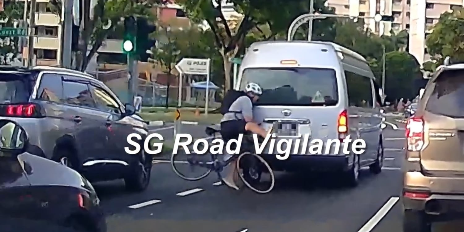 Their Facebook video showed the cyclist waiting behind the minibus at the red light of the Clementi Avenue 2 intersection with West Coast Road.
