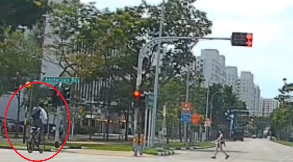 Cyclist seen crossing Sengkang junction during red light, motorcyclist collides into him