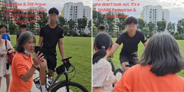 Cyclist allegedly knocks old woman down along shared path in Serangoon, claims she didn’t look out