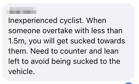 One commenter feels that the cyclist is inexperienced, as they seemed to be unsure of the distance needed to overtake a vehicle.