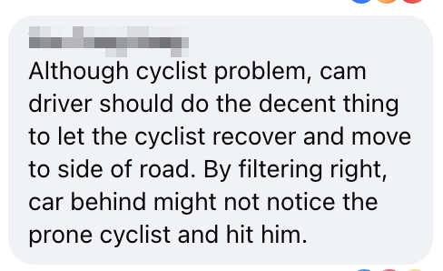 Another commenter, however, felt that the car driver should have remained stationary as the cyclist recovered.