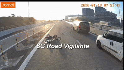 The incident was captured on dashcam and later shared on the SG Road Vigilante (SGRV) Facebook page.