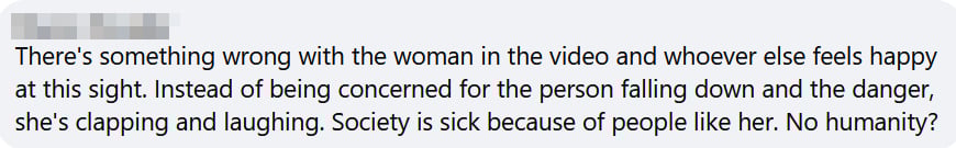 “There’s something wrong with the woman in the video and whoever else feels happy at this sight,” they wrote.