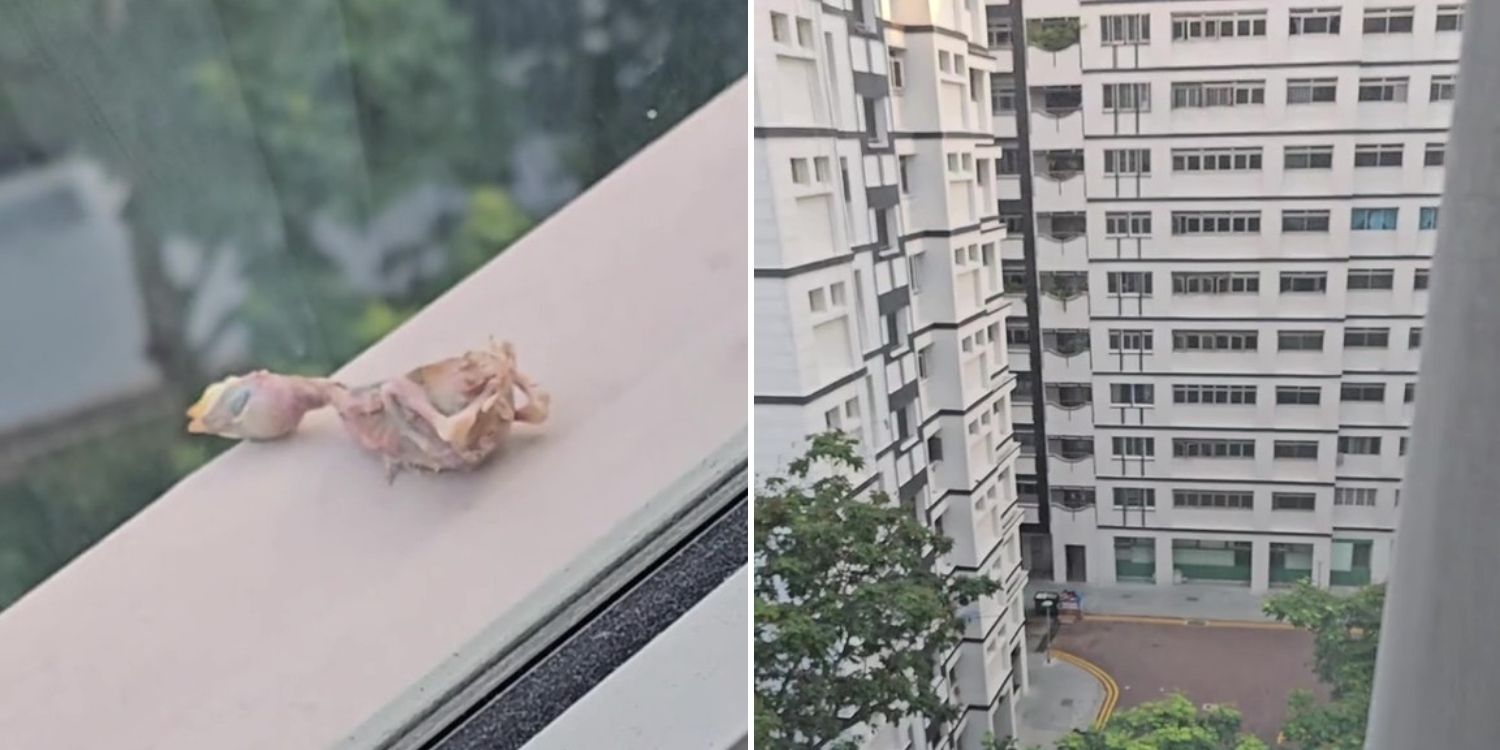 Woman stunned to find dead newborn chick on window ledge inside Tampines home