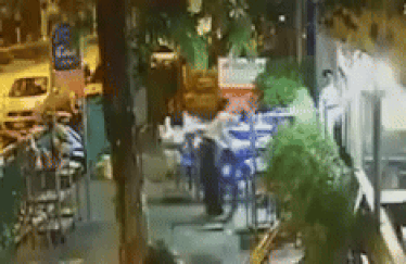 What happened next was caught in CCTV footage that was shared on a Thai Facebook page, showing the diner aggressively shoving the man out onto the sidewalk before getting more violent.