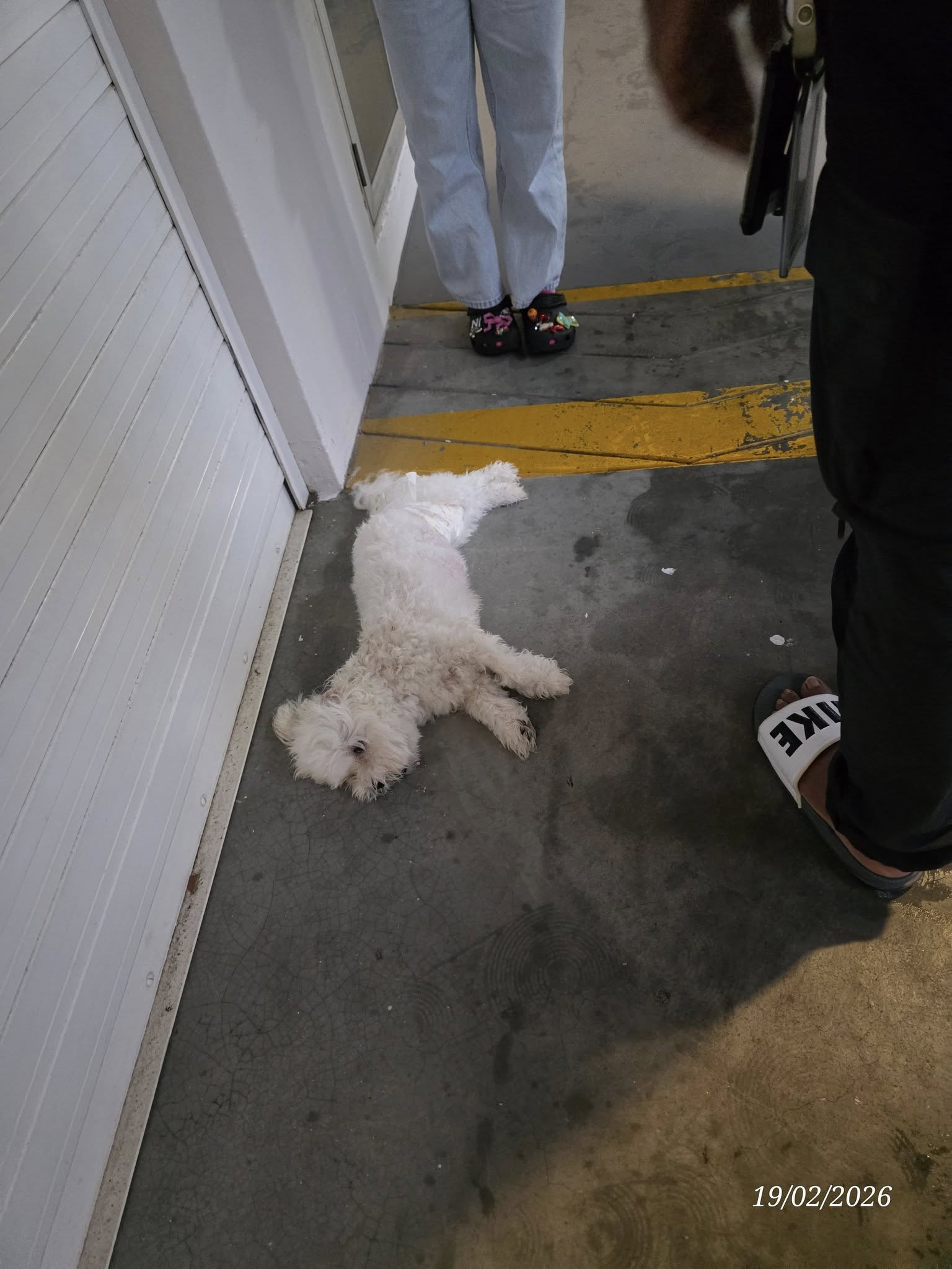A photo shared in the “Lost and found pets in Singapore” Facebook group showed the white pooch’s carcass lying on the ground.