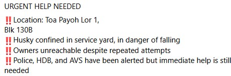 After receiving the appeal, the CDAS representative reported it to NParks’ Animal & Veterinary Service (AVS) and made the Facebook posts.