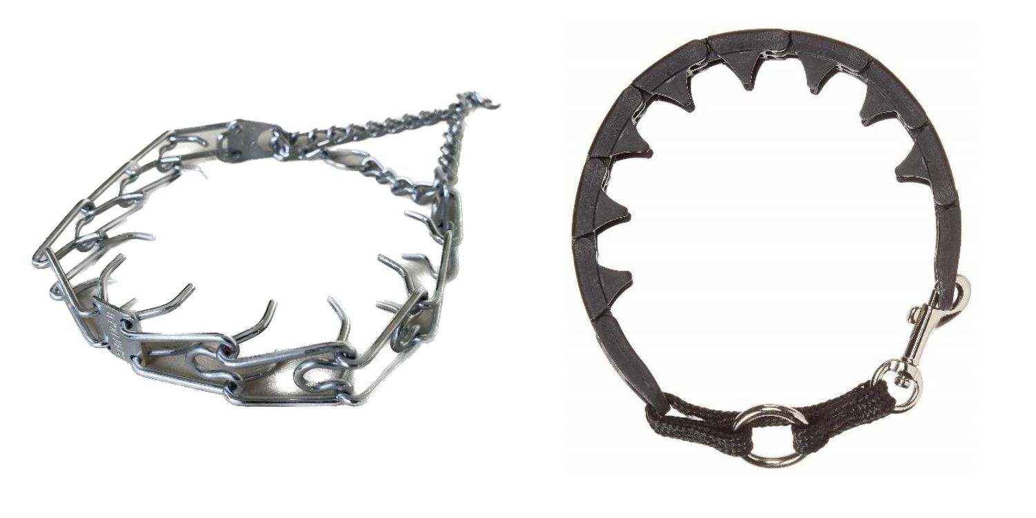 AVS discouraged the use of shock and prong collars, as they may cause the dog to experience distress, such as pain, fear and anxiety.