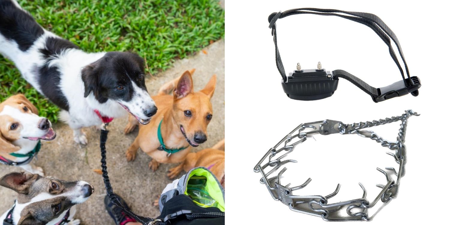 Shock and prong collars should be used only as a last resort, under the supervision of trained professionals, and accompanied by education for the owner on proper use.