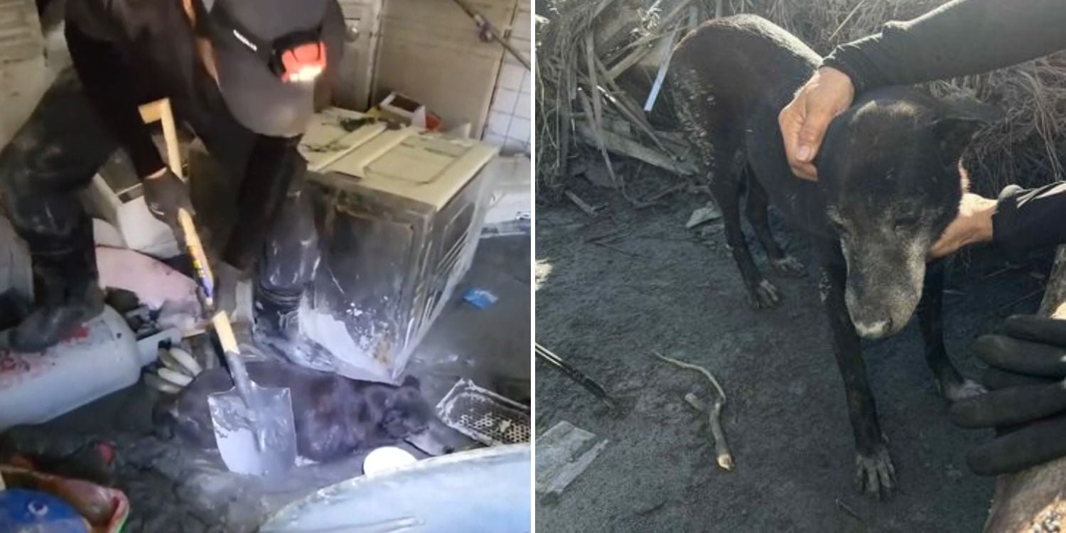 While waiting for an excavator to clean up his home, he heard a faint whimpering sound from the house opposite his.