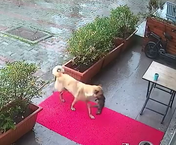 Dog carries sick puppy in the rain to vet clinic in Türkiye