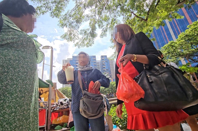 Domestic helpers spotted illegally selling food and goods outside Paya Lebar’s City Plaza