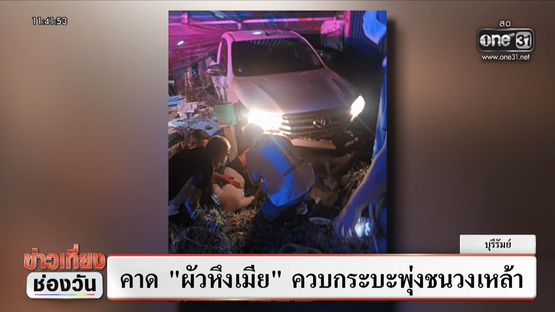 The driver’s ex-wife, Ms Pensri, was among those injured but only sustained minor injuries and was transported to Ban Kruat Hospital for treatment.