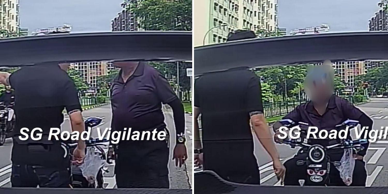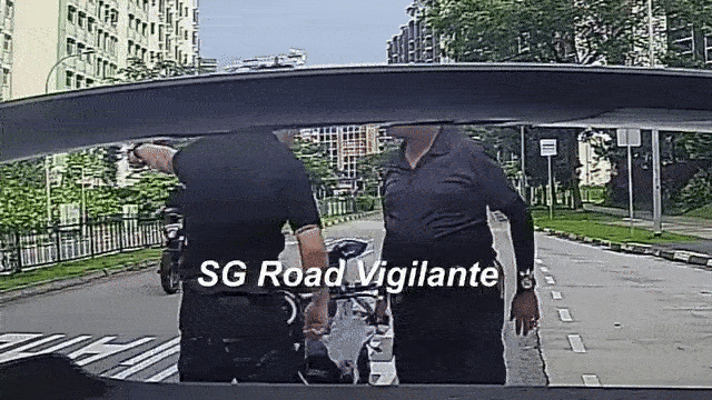 Footage of the incident, posted by SG Road Vigilante on Facebook on 18 Nov, showed both men leaving their respective vehicles/devices to confront each other.