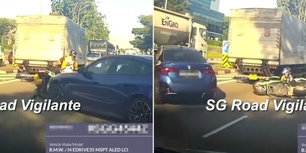 BMW driver crosses 3 lanes on busy AYE, collides with lane-splitting motorcyclist