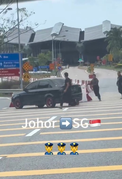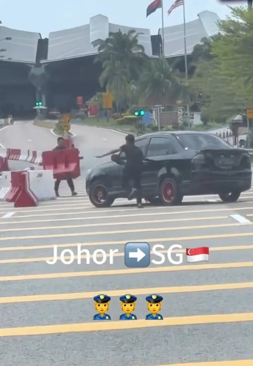 A video posted on the Malaysia-Singapore Border Crossers Facebook group showed the car evading an axuiliary police officer who tried to stop it.