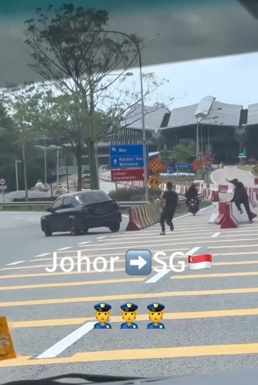 The car then sped towards the exit to Singapore.