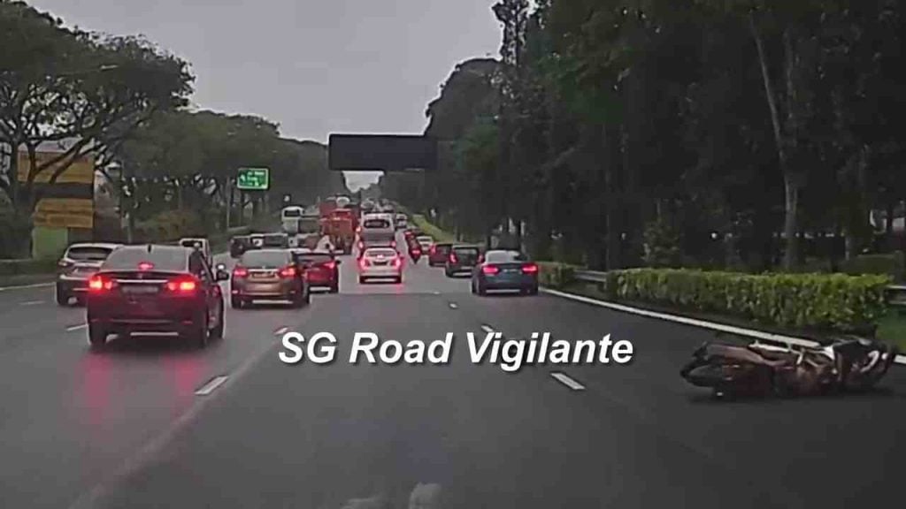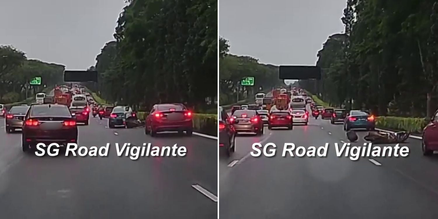 A driver was recently recorded cutting across three lanes on the Pan Island Expressway (PIE) before seemingly knocking down a motorcyclist.