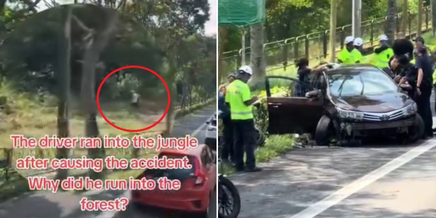 The driver of a car involved in a four-vehicle pile-up on the Seletar Expressway (SLE) was seen fleeing into the jungle after the accident last Saturday (21 June).