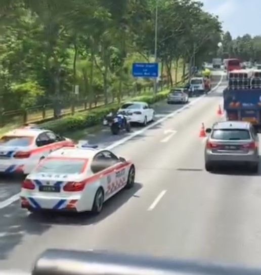 The clip showed several police cars on the left road shoulder, with the far-left lane cordoned off and an Expressway Monitoring and Advisory System (EMAS) Recovery vehicle present.