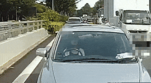 The clip, filmed from the rear of a camcar in front of the driver in question, shows a silver car following closely behind on a relatively busy stretch of road.