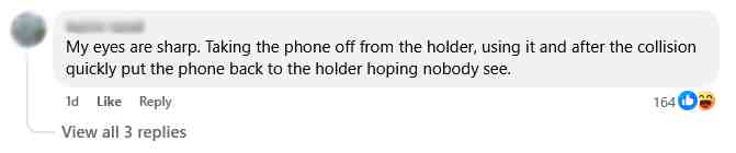 One eagle-eyed commenter claimed the driver appeared to hurriedly put her phone back into the holder right after the collision.