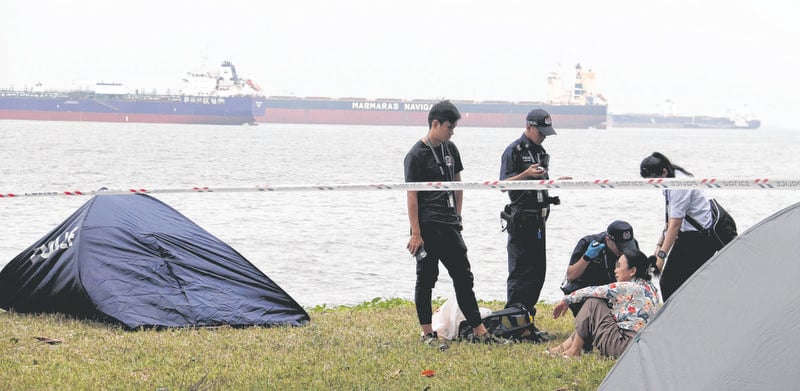 Reporters observed at 6pm that a police blue tent had been set up, with a woman in a floral top sitting on the ground nearby, crying.