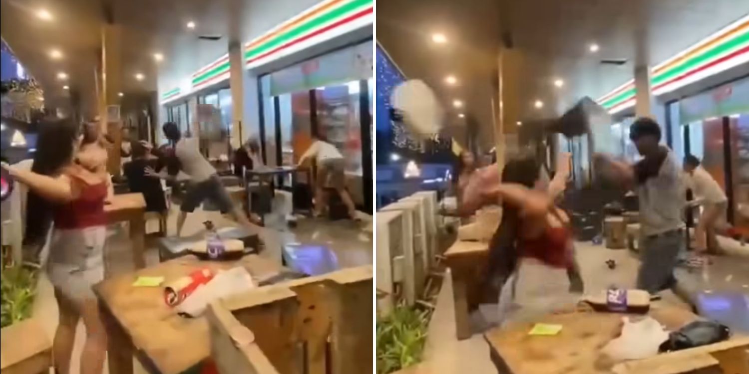 A group of youths, who were believed to be drunk, went viral after throwing chairs and tables at each other during a brawl outside a 7-Eleven outlet in the Philippines.