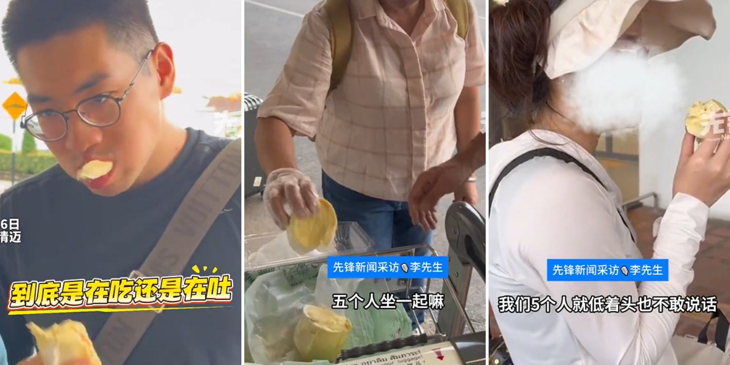 A video by Pioneer News showed the family devouring the durian outside the airport.