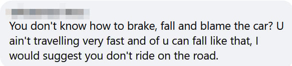 Following the post, netizens overwhelmingly blamed the e-bike rider instead of the car driver. One of them accused the rider of being unable to brake properly.