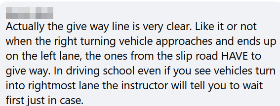 A more sympathetic user pointed out that right-turning vehicles always have the right of way in this situation.