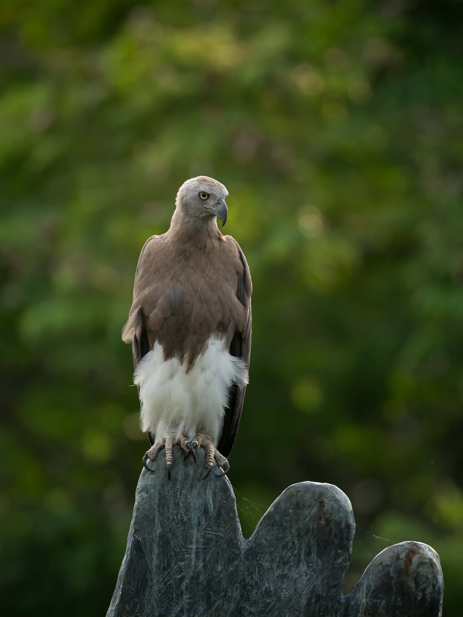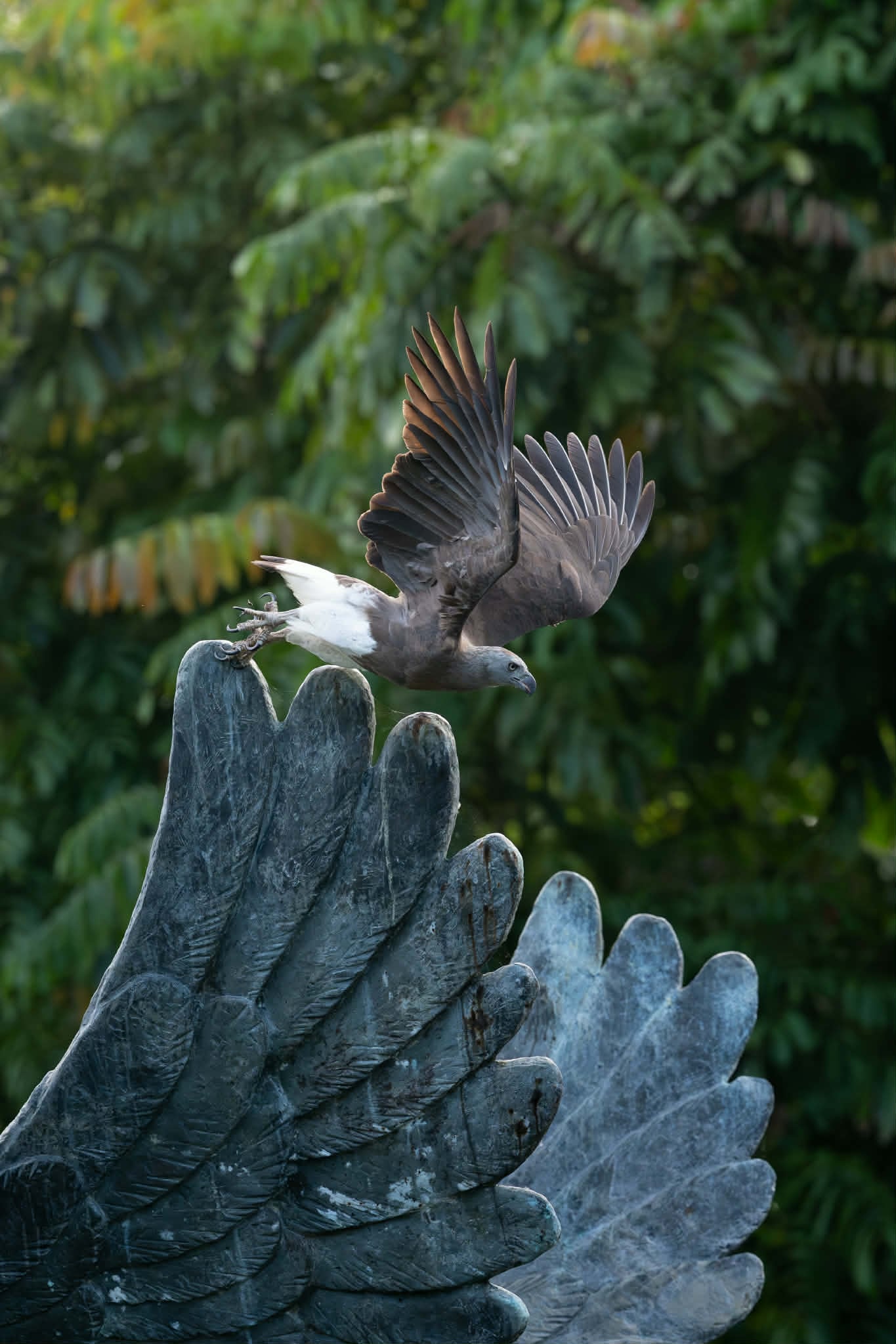 The eagle remained poised on the statue for some time, surveying the lake below for its evening meal.