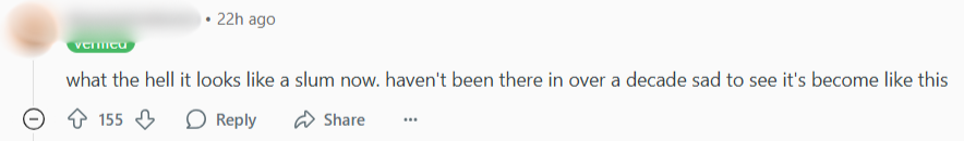 The post sparked strong reactions, with several Reddit users commenting that the area resembled a “homeless encampment” or a “slum” due to the visible litter.