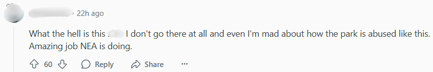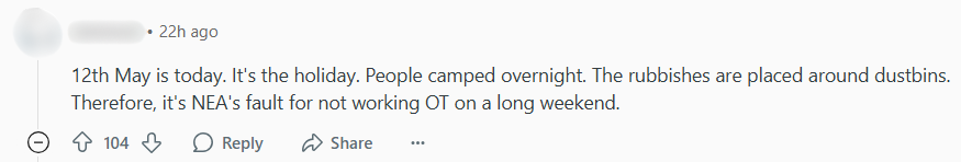 Some commenters questioned the role of public agencies such as the National Environment Agency (NEA) and the National Parks Board (NParks), suggesting more could be done to enforce anti-littering laws and issue fines where appropriate.