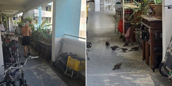 Man scatters rice outside AMK flat to feed birds, attracts flocks & annoys neighbours