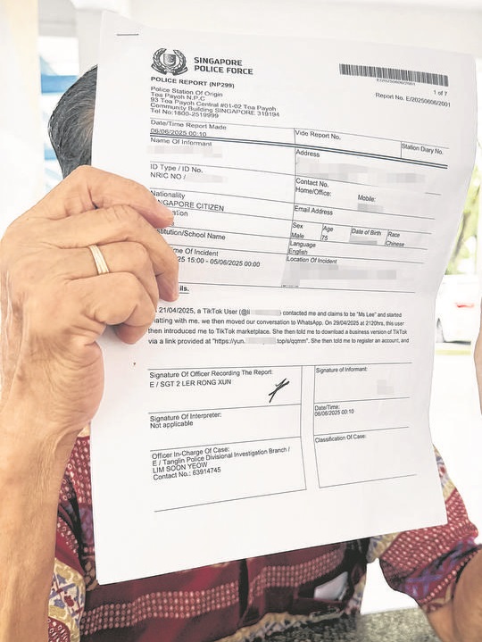 An elderly man was scammed by a “woman” he met on TikTok, losing a total of S$55,500.