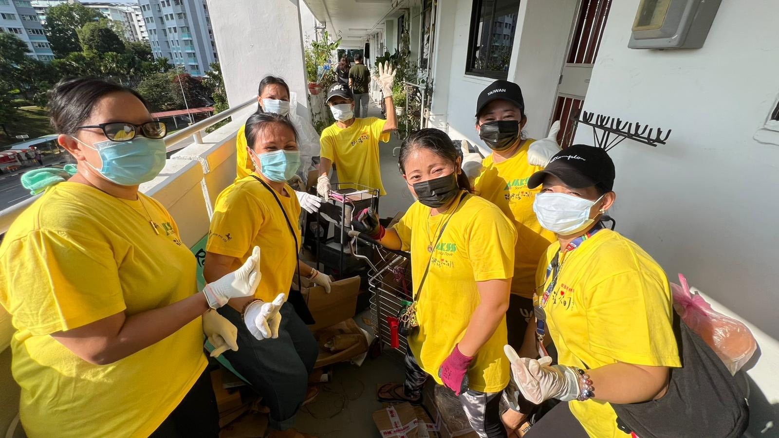 On Sunday morning, Michael Sim, founder of charity organisation AMKSS Social Move, led about 40 volunteers and cleaners to the three-room flat along Ang Mo Kio Avenue 3 to assist the mother and daughter.