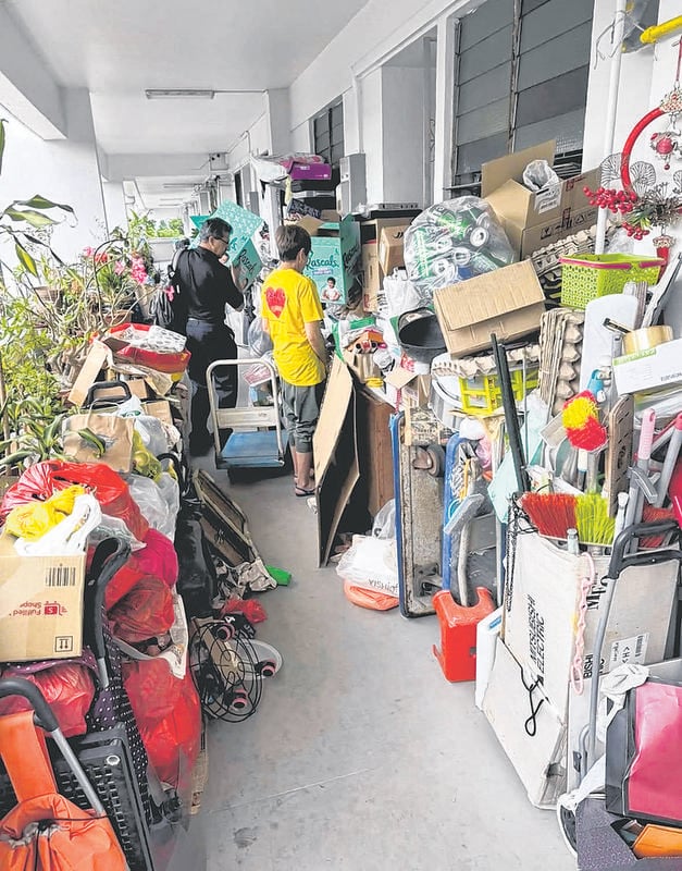 An elderly woman in her 80s and her daughter have been living in a severely cluttered flat in Ang Mo Kio, where items were piled both inside and outside the unit.