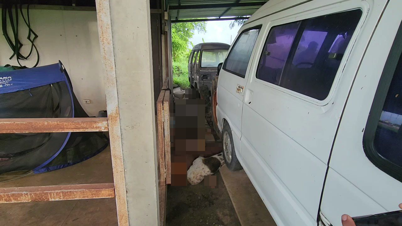 Theera’s wife, Ms Wanwimol, 33, told police she had returned home on Monday evening during the storm but didn’t notice anything unusual. She walked past the garage, assuming her husband wasn’t home, and went inside due to the heavy rain.