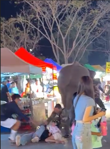 A video captured by a local resident, identified by her Facebook name, Picky Phurada, showed the elephant stepping over the mother and daughter as a mahout struggled to control it.