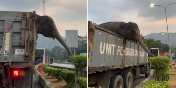 Elephant in M’sia caught snacking on roadside plants while being transported on truck