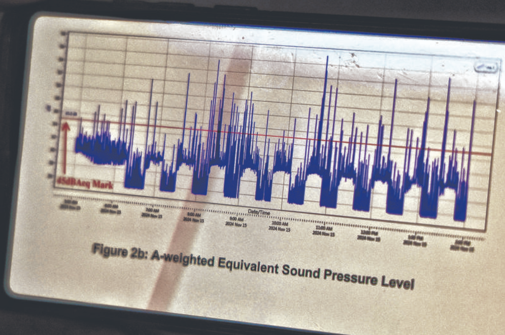 These sounds occurred at least twice every hour, with the highest volume recorded at 57 decibels — loud enough to disturb someone trying to fall asleep.