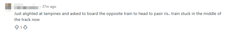 Another Redditor who took a train from Tampines to Pasir Ris claimed they were “stuck in the middle of the track”.