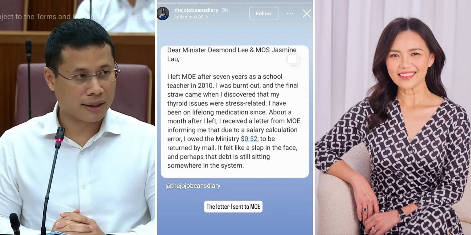 But a month after she resigned, she allegedly received a letter telling her she owed MOE S$0.52 due to a salary calculation error.